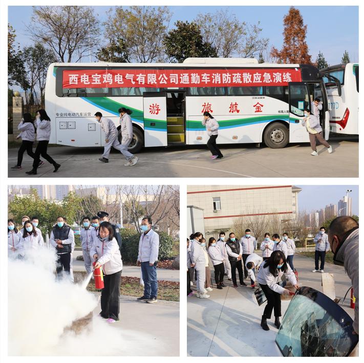 為了切實提高我公司員工的消防意識,真正掌握消防知識,增強自救互救的能力,11月24日下午,西電寶雞電氣開展通勤車消防疏散應急演練。